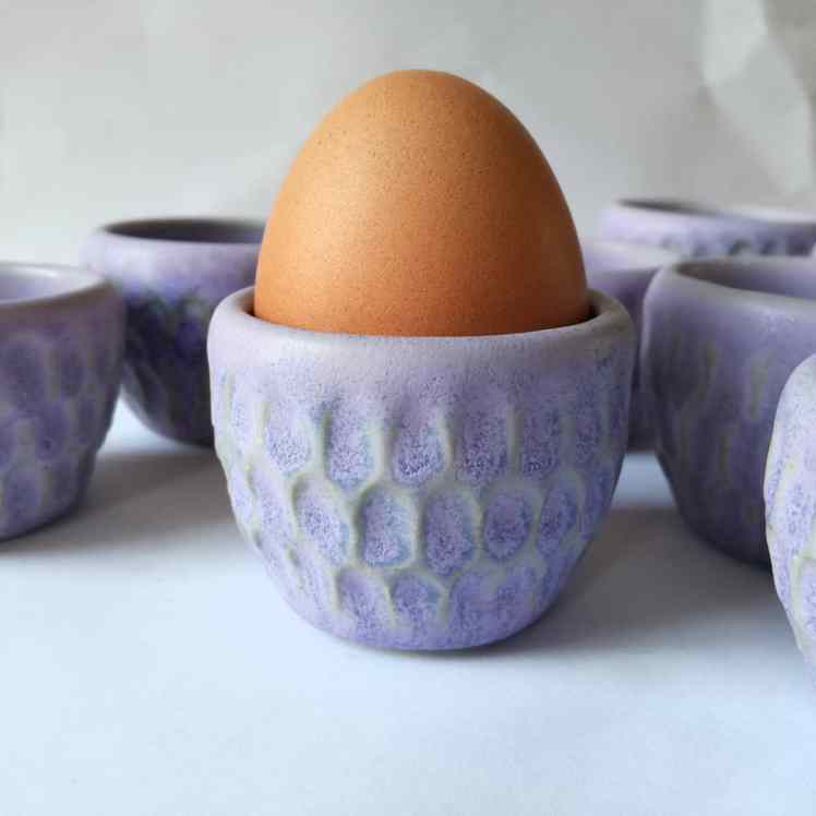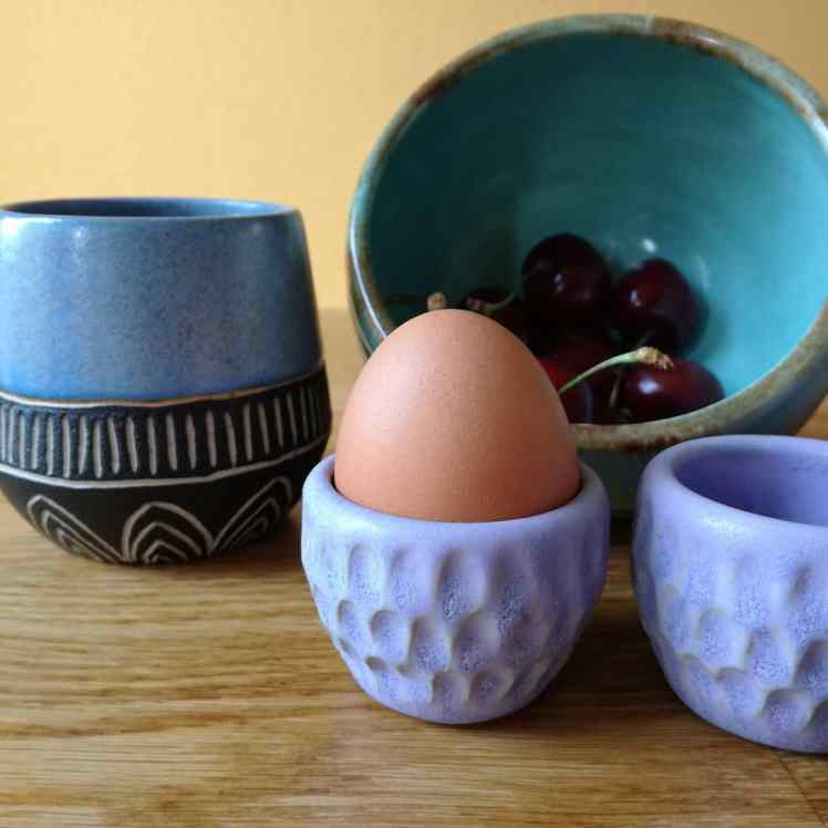 Eierdopjes!!!! En hoe! Ook deze waren in opdracht. Via instagram hadden we inspiratie gevonden voor een mooi vormpje. En toen was t draaien geblazen. Best lastig aangezien de maat best nauw komt en het klein is. Vanaf het moment van draaien tot het werk twee keer gestookt is, krimpt het zo’n 10% en gebruik je nu S, M of L eieren? Hoe dan ook, het is gelukt en het glazuur vind ik fantastisch. Ze hebben een mooi thuis gekregen en de twee miskleunen mag ik zelf houden en daar ben ik heel blij mee π