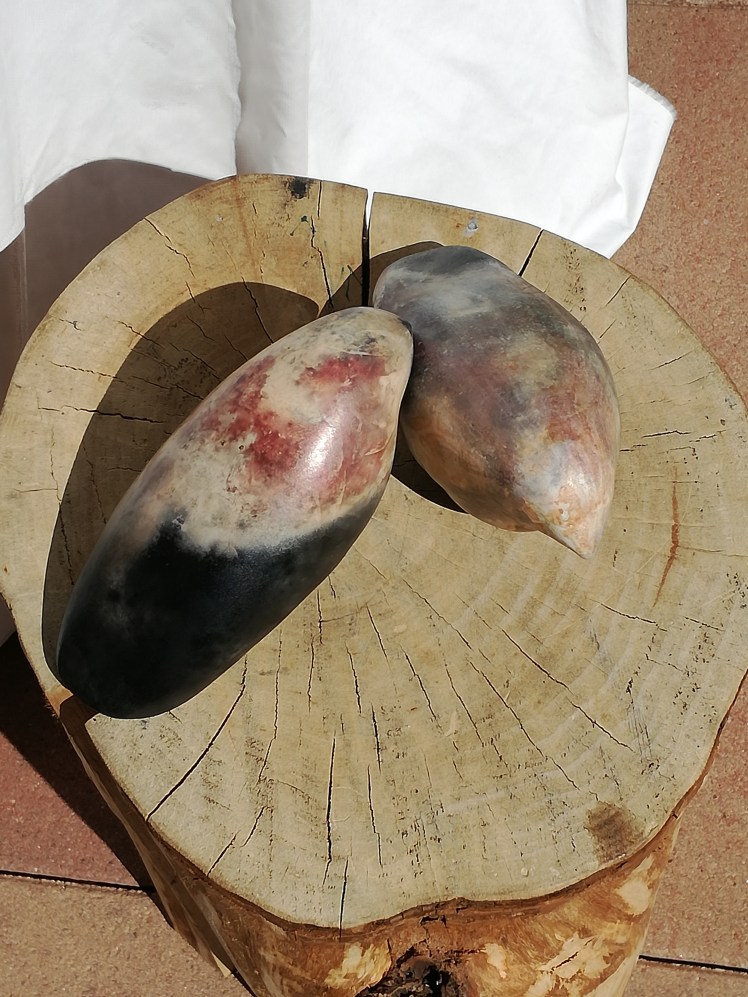 Van restjes klei die over waren van de keien, heb ik vogeltjes gemaakt. Groter dan de vogels die eerder op de blog stonden. Maar ook deze zouden op een stokje kunnen. Twee ervan hebben een goede plek al gevonden. Deze twee bivakeren nog hier 😊